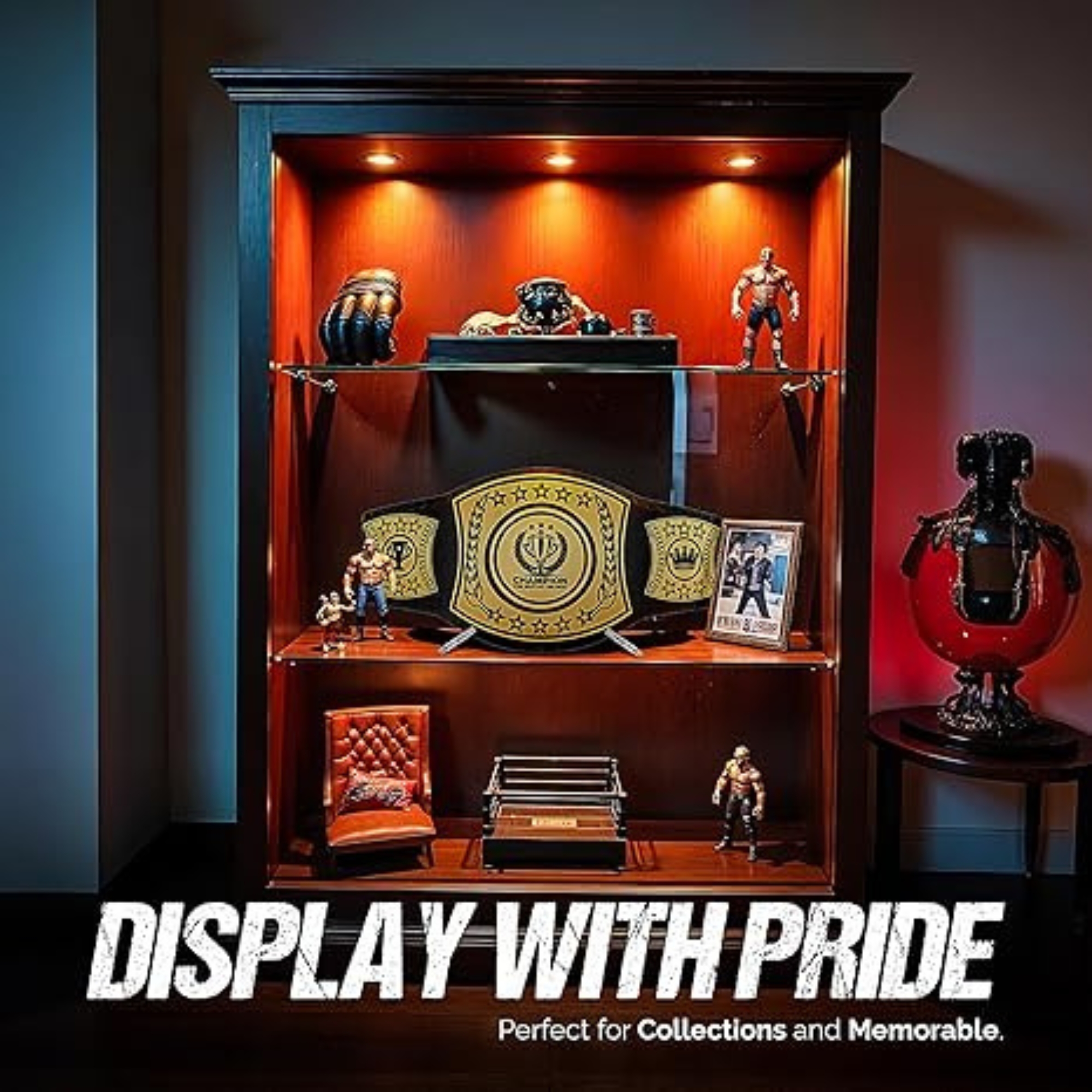 This is made with heavy metal plates of die-cast material that weigh a significant 6 pounds, so it is not a cheap toy. The metalwork is executed with magnificent plating of gold, and the details are finished by hand, giving each plate to have a professional, championship appearance. High-quality synthetic leather belts and straps that have two stitches on their edges keep this belt in a battle-ready state even after multifarious celebrations of victories.