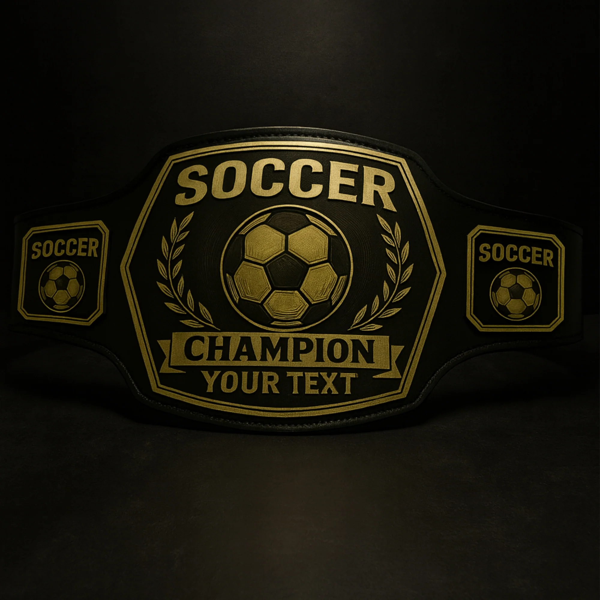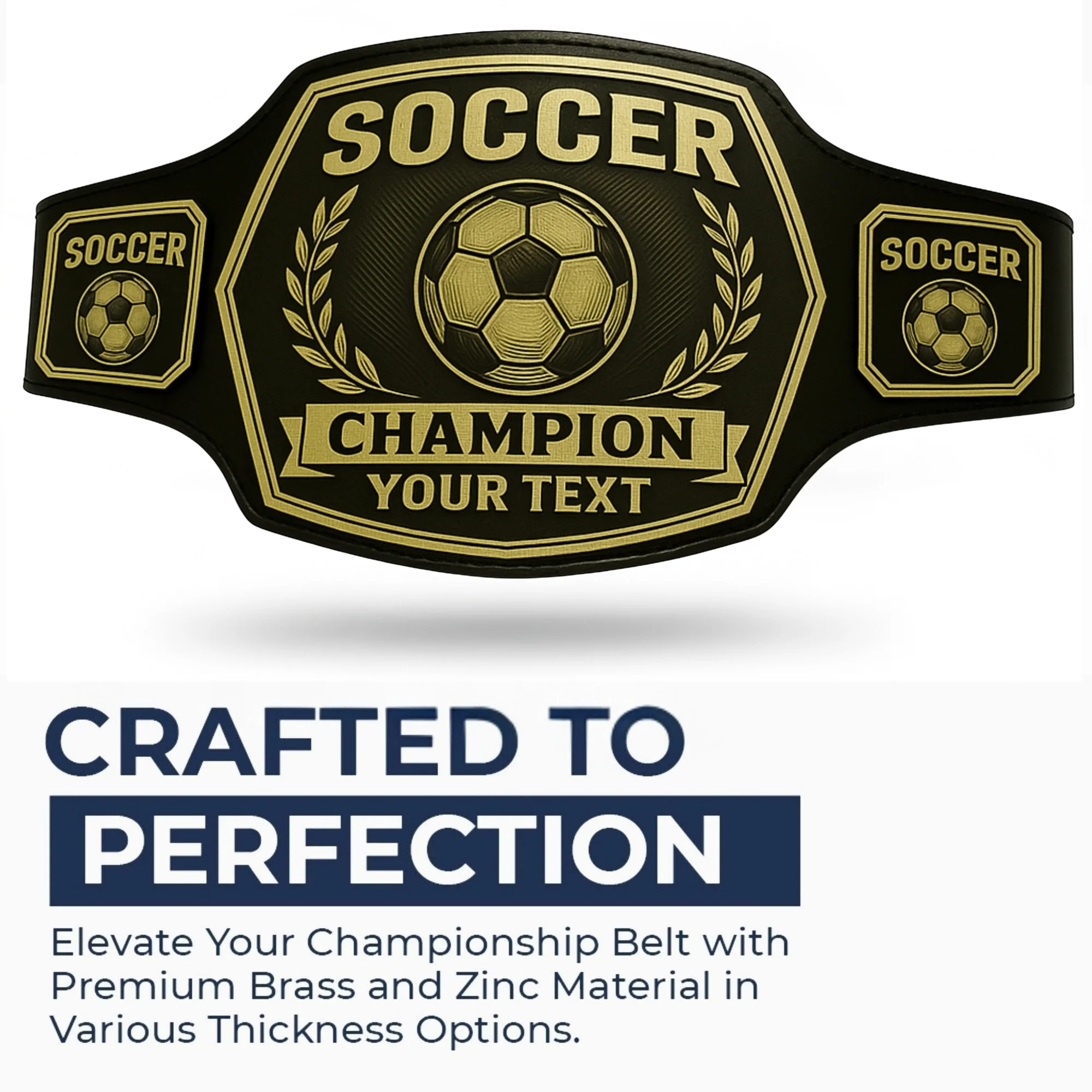 Trophies rest idly on shelves. A Soccer Championship Belt follows the champion. It is proudly worn and raised in moments of victory. Reward your winners with something you will not forget, something bold, exciting, and memorable, instead of the traditional trophy. So you can add your own personal text to make a belt that represents your league, team, or tournament. It is not just an award; it is a declaration of being the best in the industry.