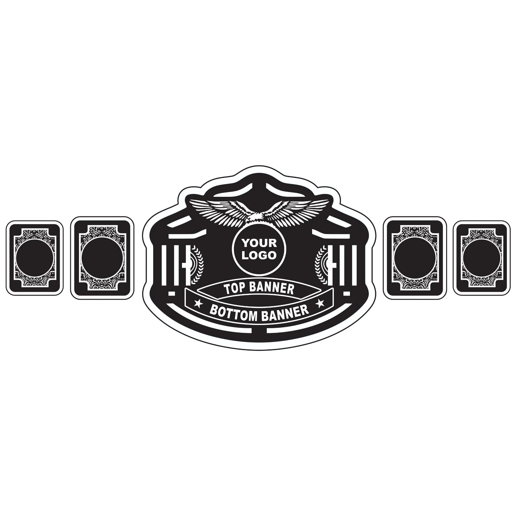 Large center plate and side plates designed for engraving, logos, or custom artwork